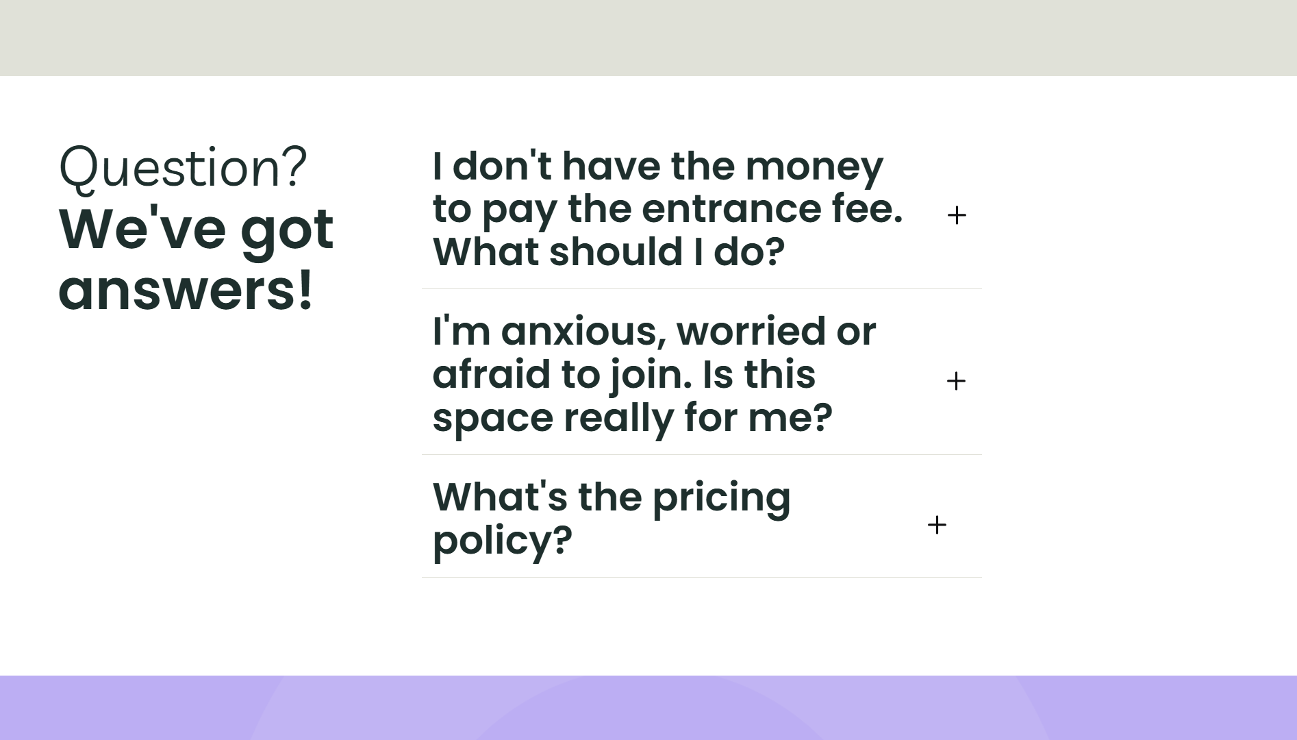 Frequently asked questions clearly presented to reduce uncertainty and make information available up front.